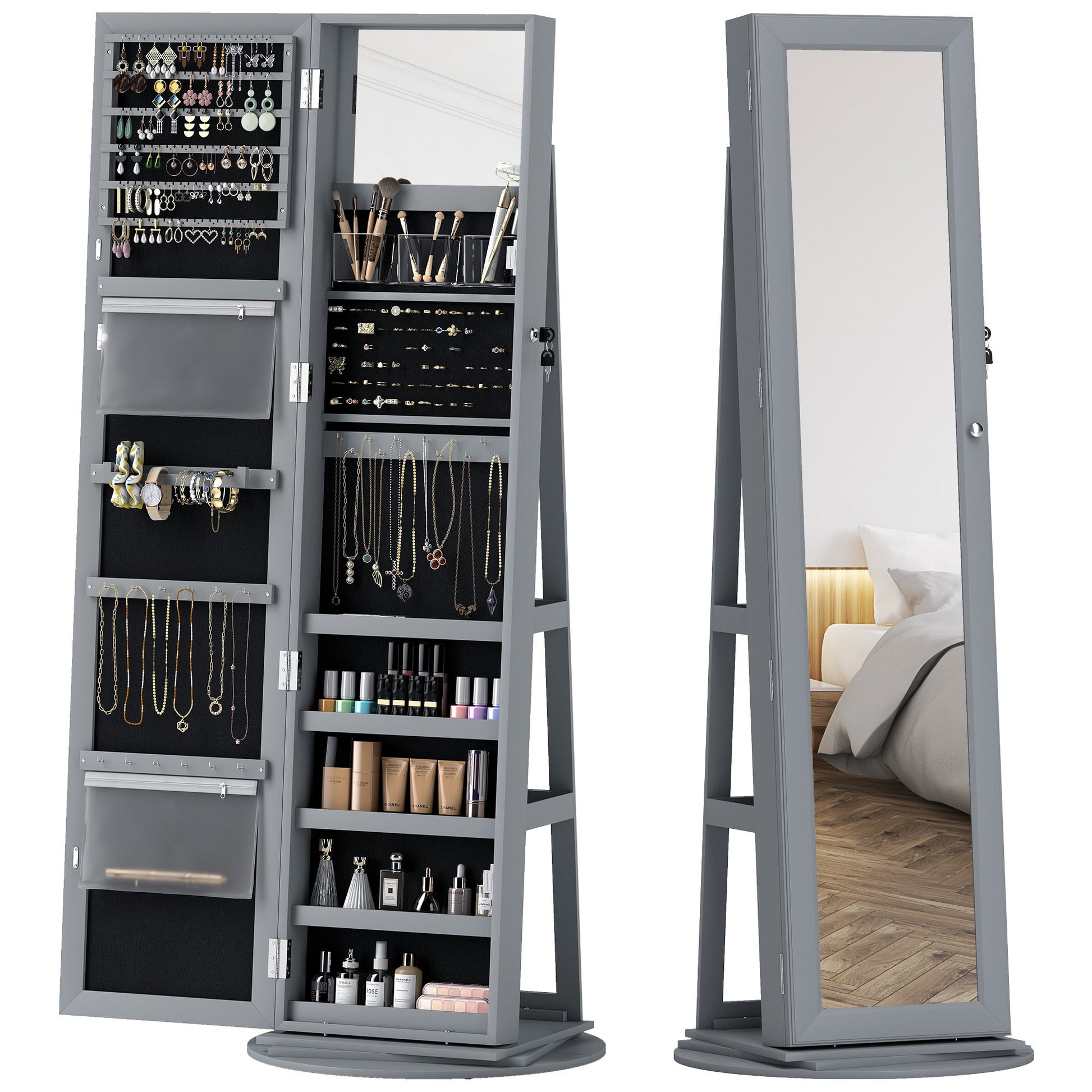 Sophisticated swivel armoire with mirror and lock, blending elegance with secure jewelry storage